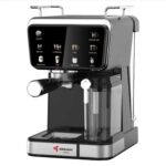 - امکانات اسپرسوساز سینی چکه گیر سیستم کاپوچینو ساز تولید کف شیر نازل بخار خروجی آب داغ سیستم گرم کردن فنجان صفحه نمایش
